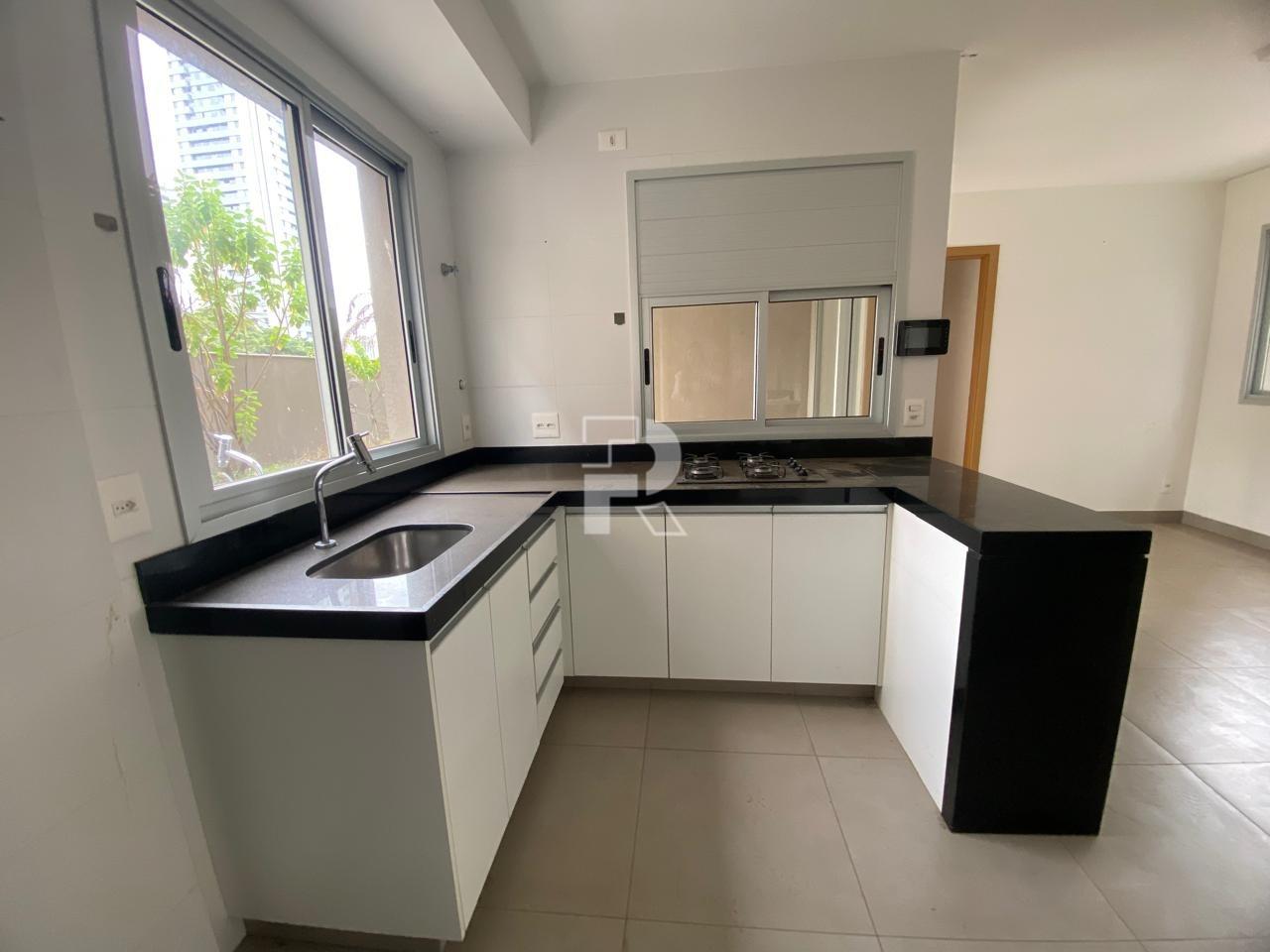 Cozinha planejada com ilha em granito;