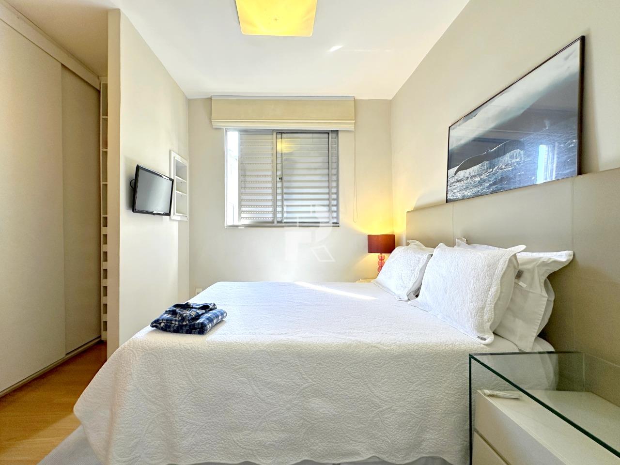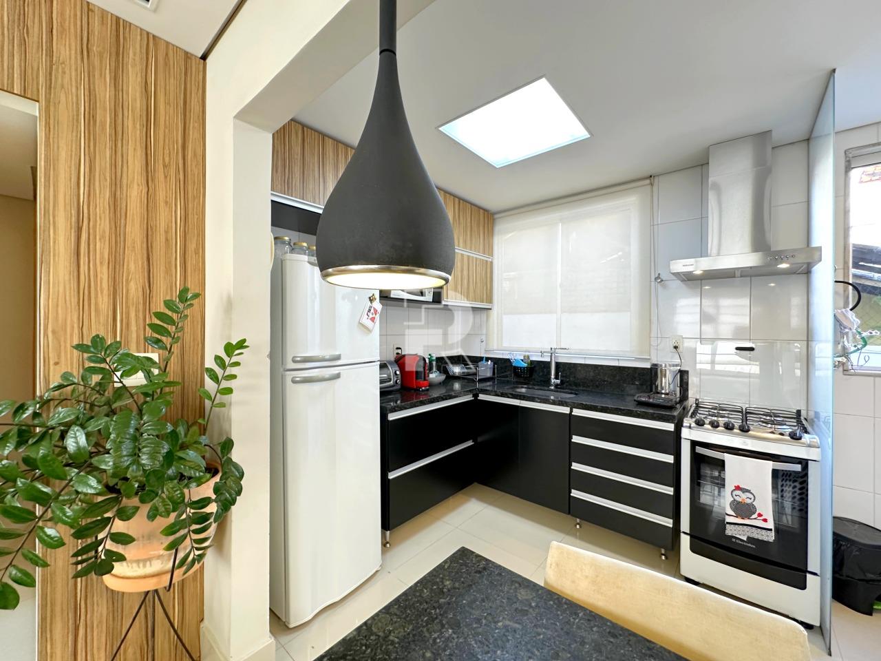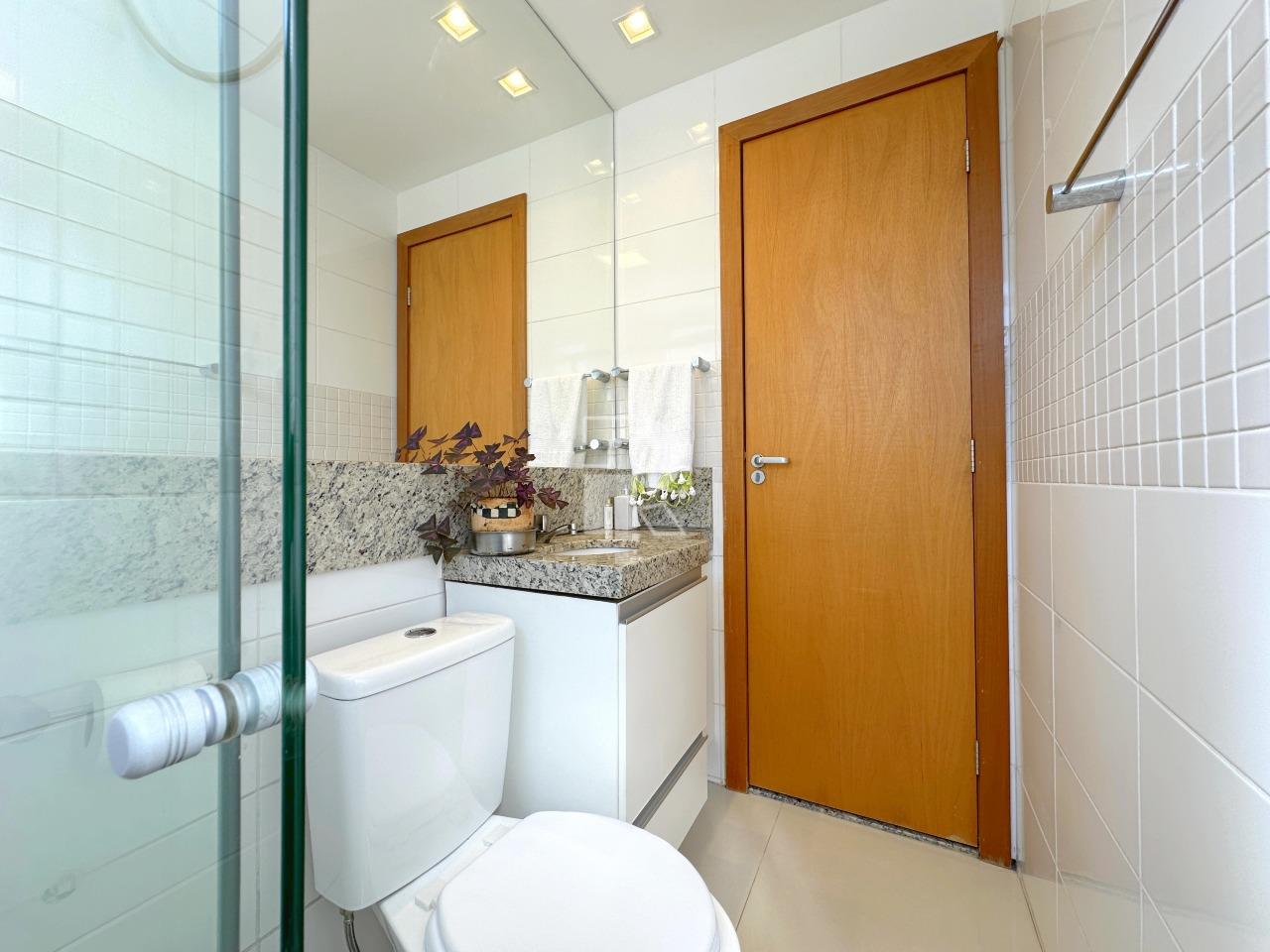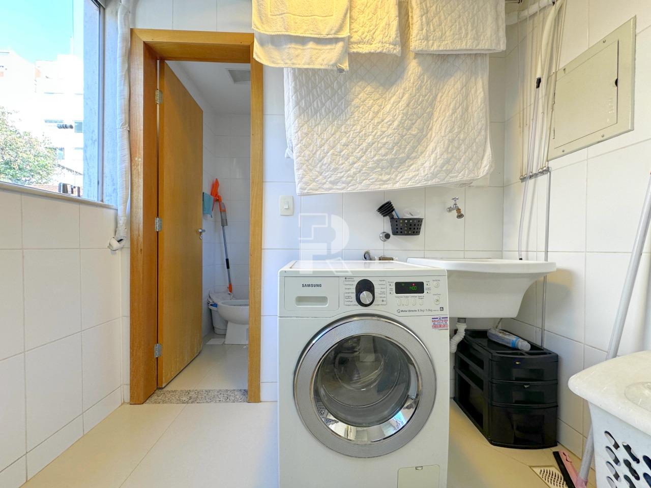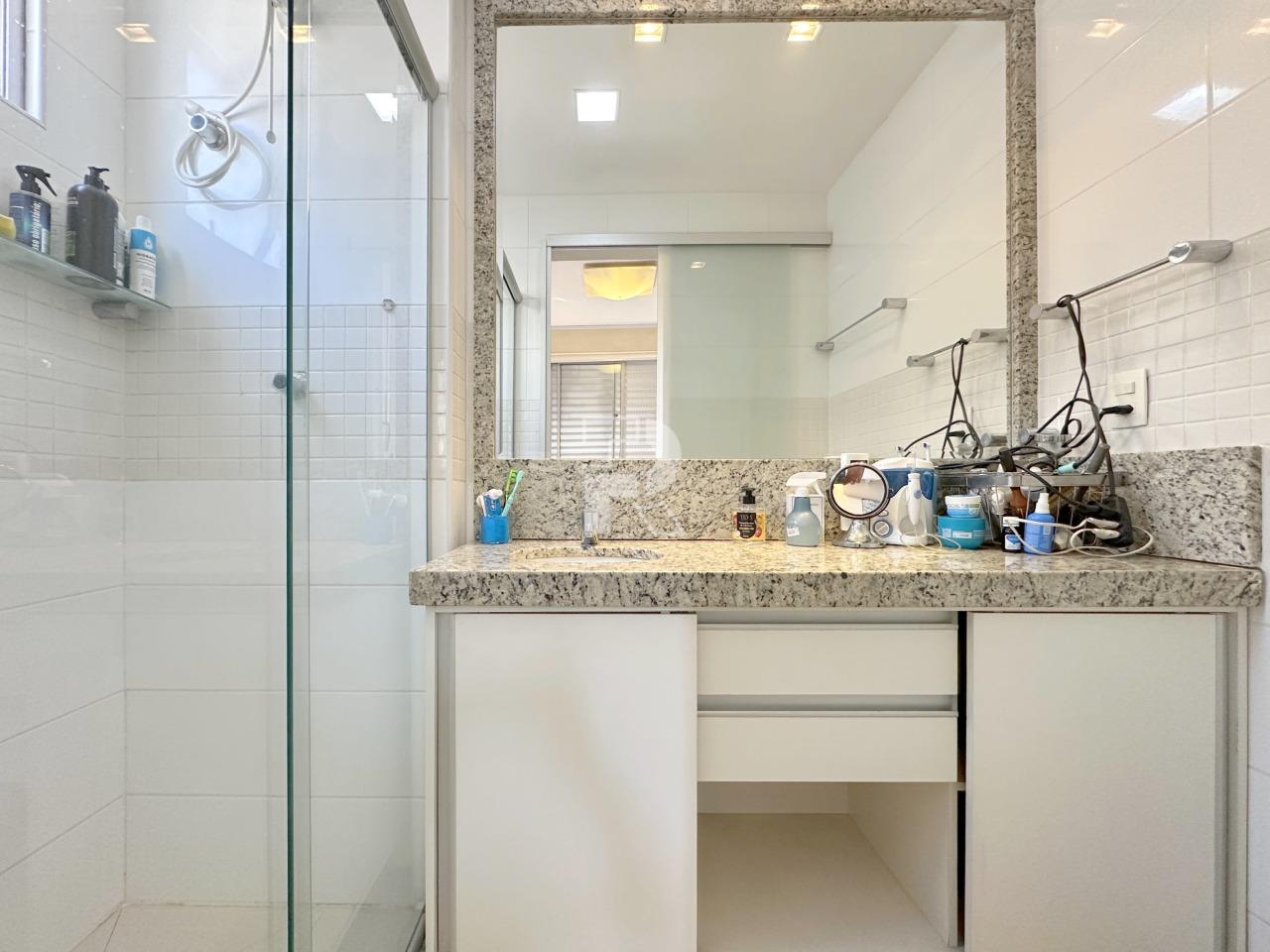 Apartamento: Sala ampla em porcelanato, com teto rebaixado e iluminação e sonorização planejada; rouparia no corredor; 02 quartos com armários, sendo Banho social e suíte com armários e box em blindex; cozinha americana com bancada em granito, armários planejados e área de serviço independente com fechamento em vidro e banho de serviço.