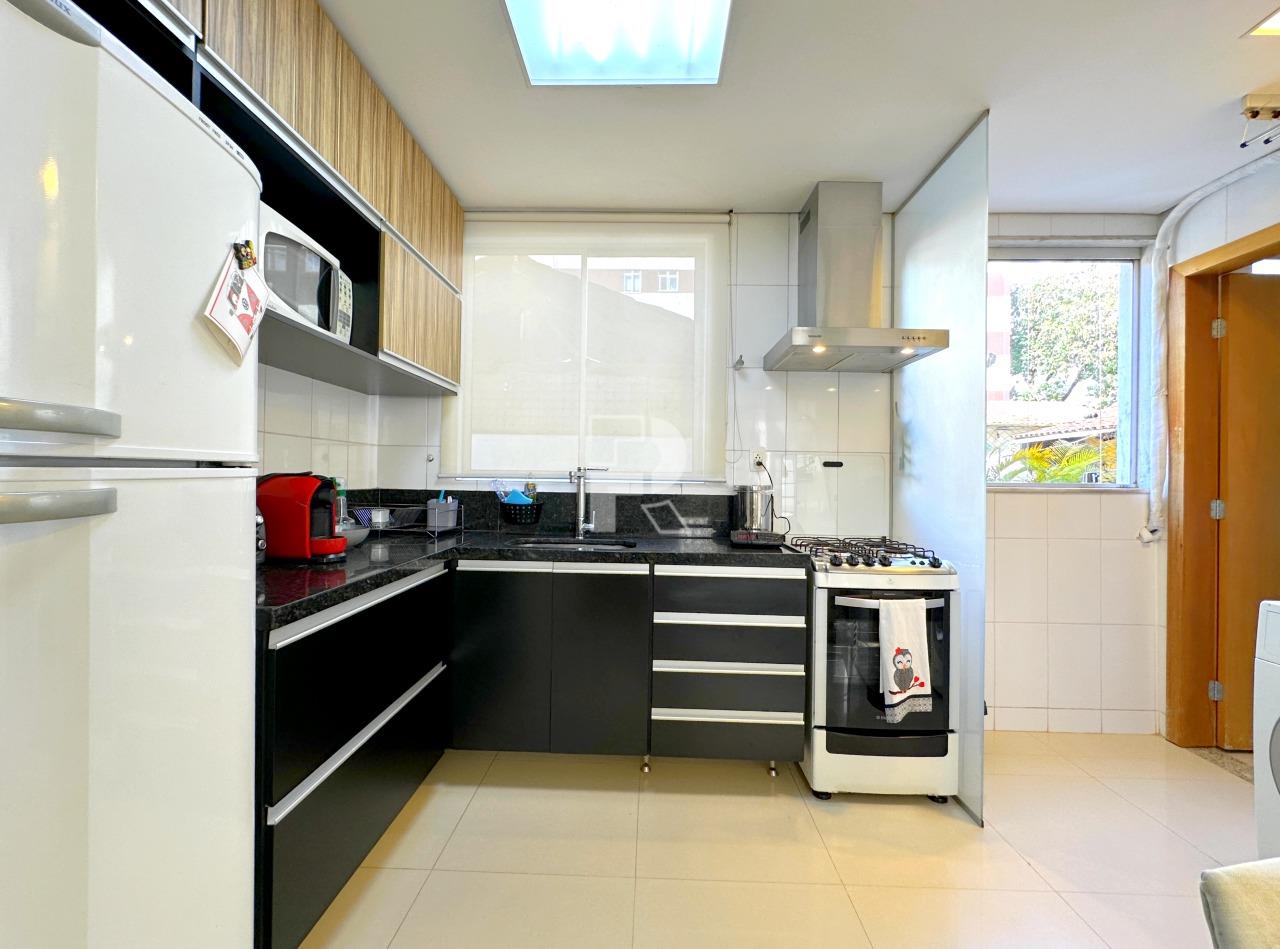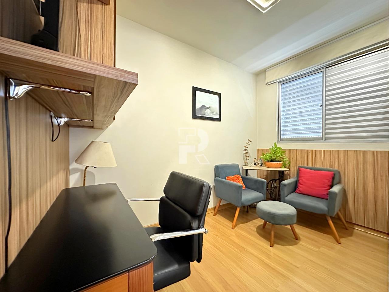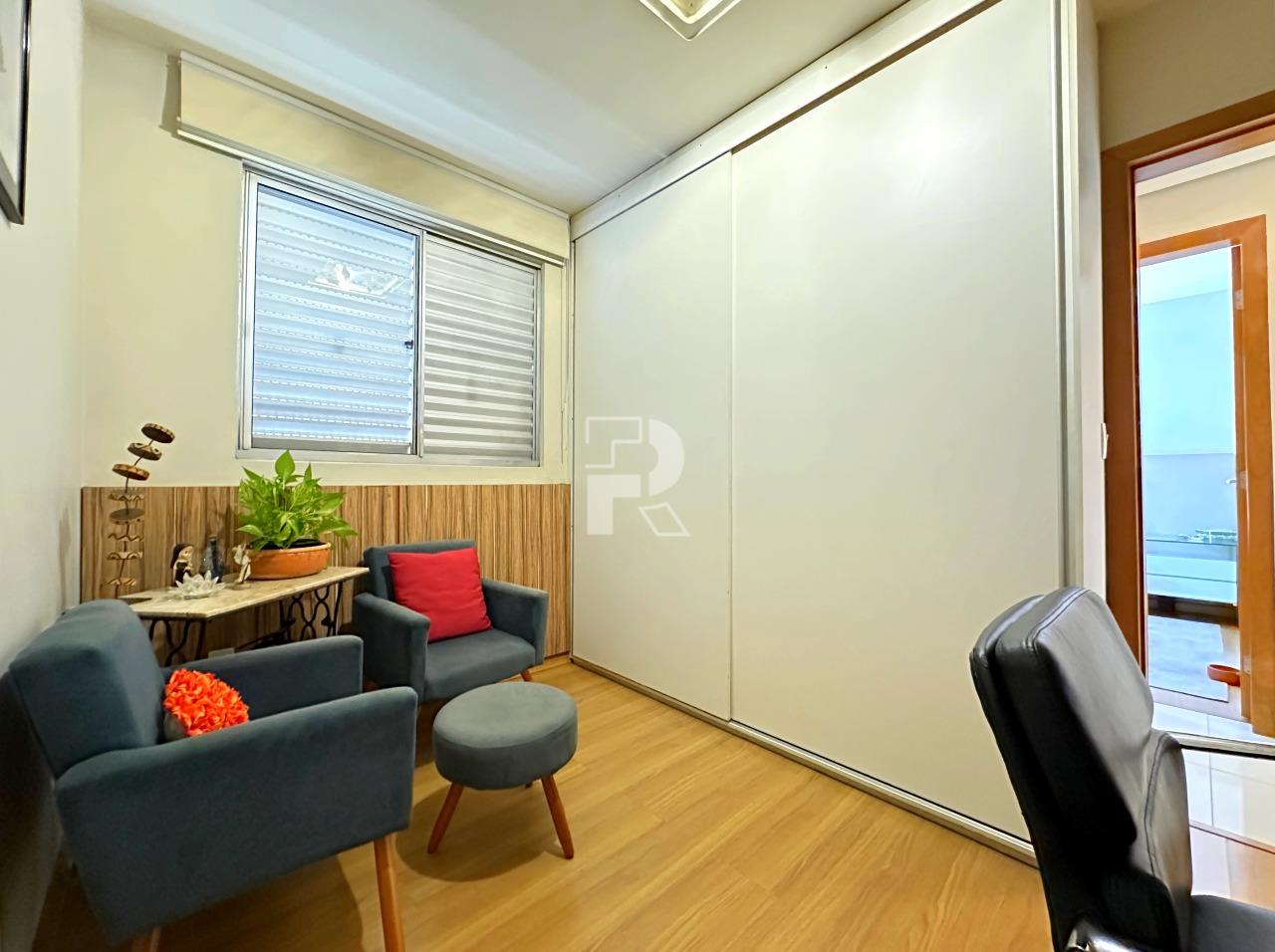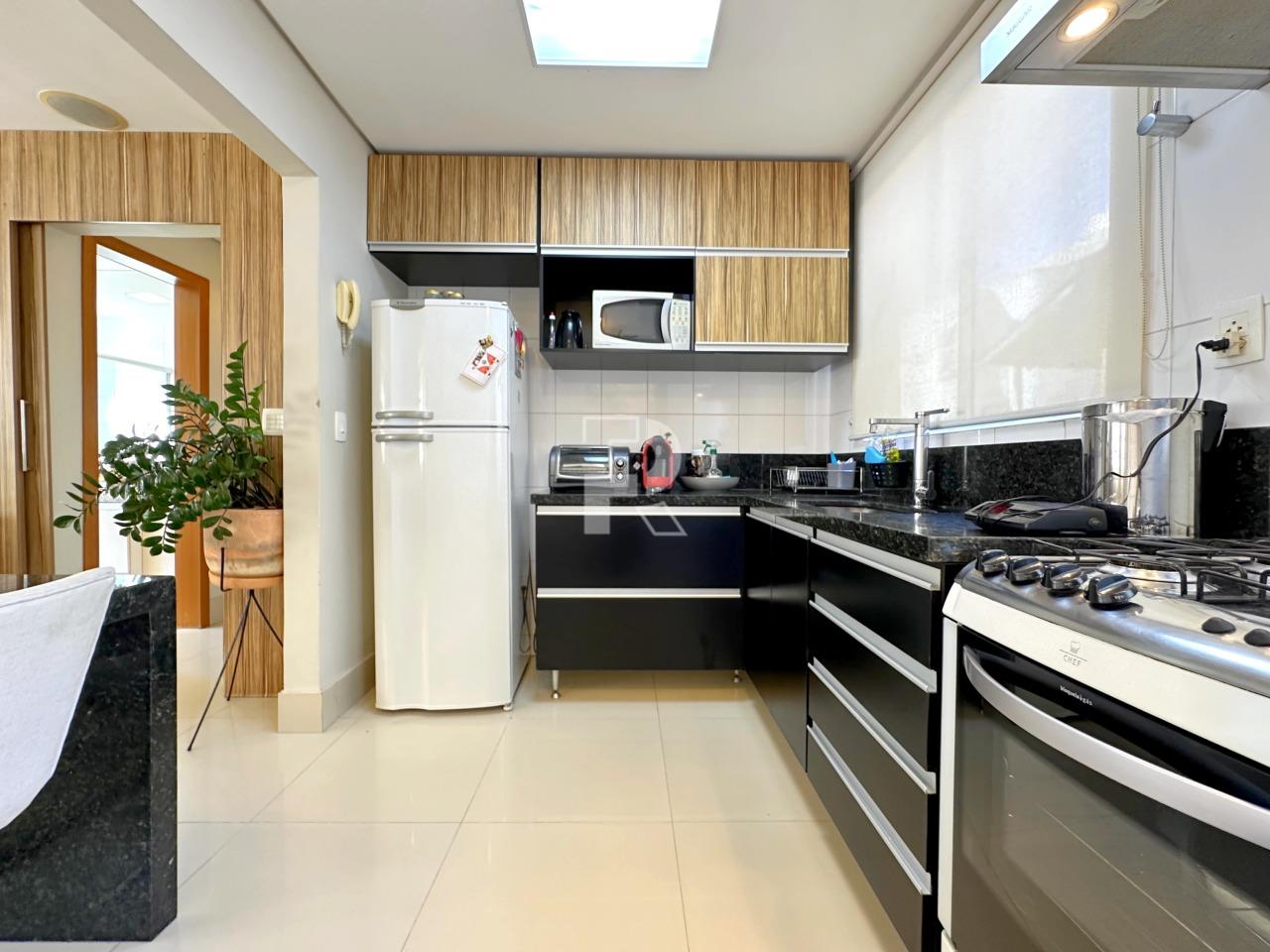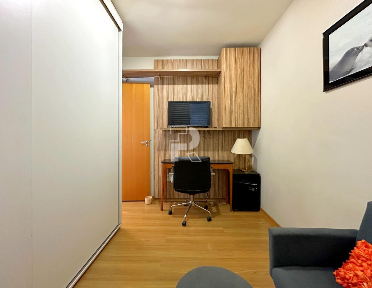 Apartamento: Sala ampla em porcelanato, com teto rebaixado e iluminação e sonorização planejada; rouparia no corredor; 02 quartos com armários, sendo Banho social e suíte com armários e box em blindex; cozinha americana com bancada em granito, armários planejados e área de serviço independente com fechamento em vidro e banho de serviço.