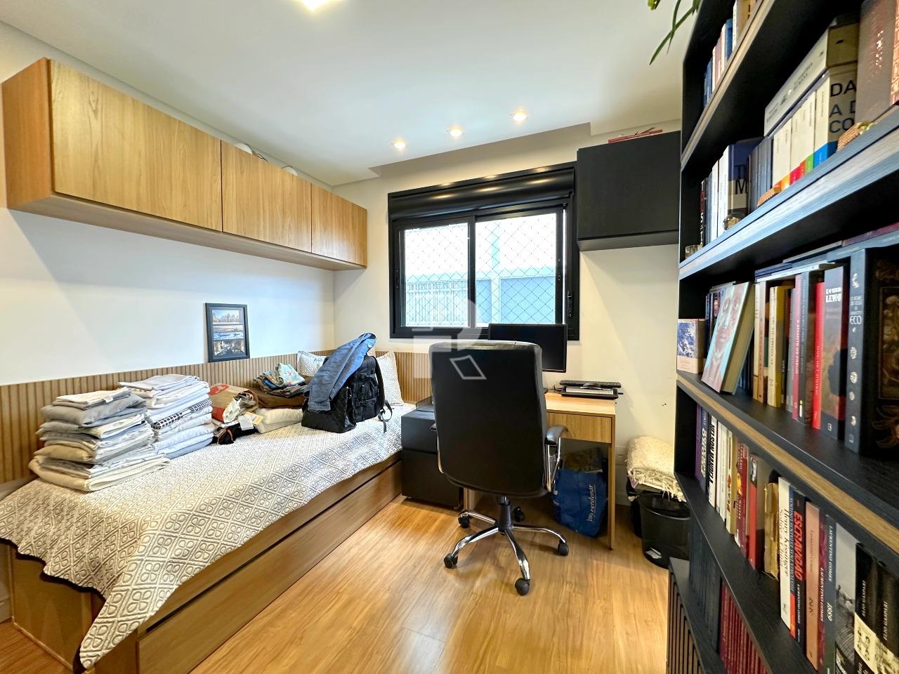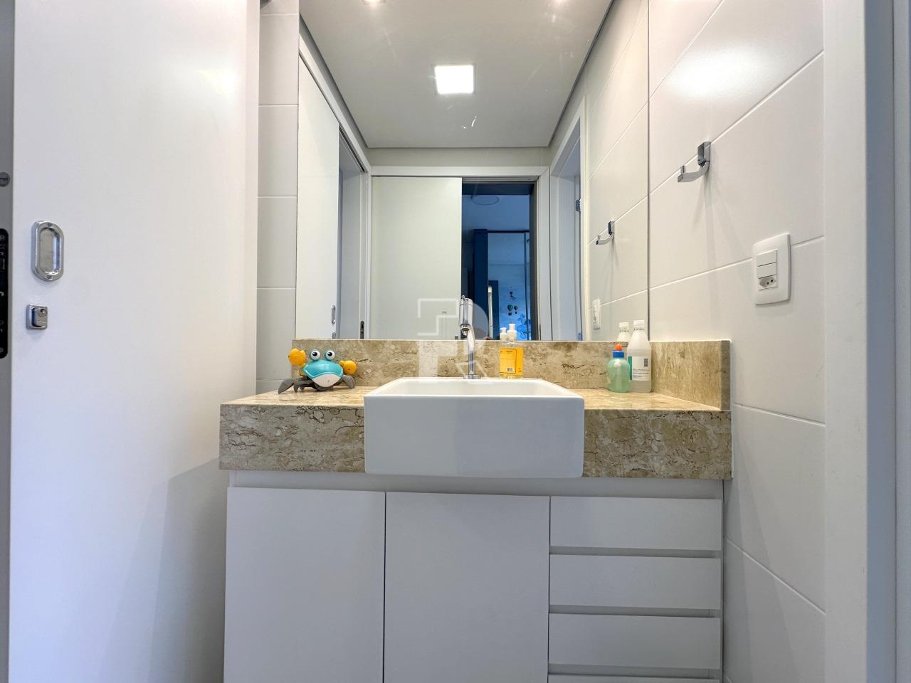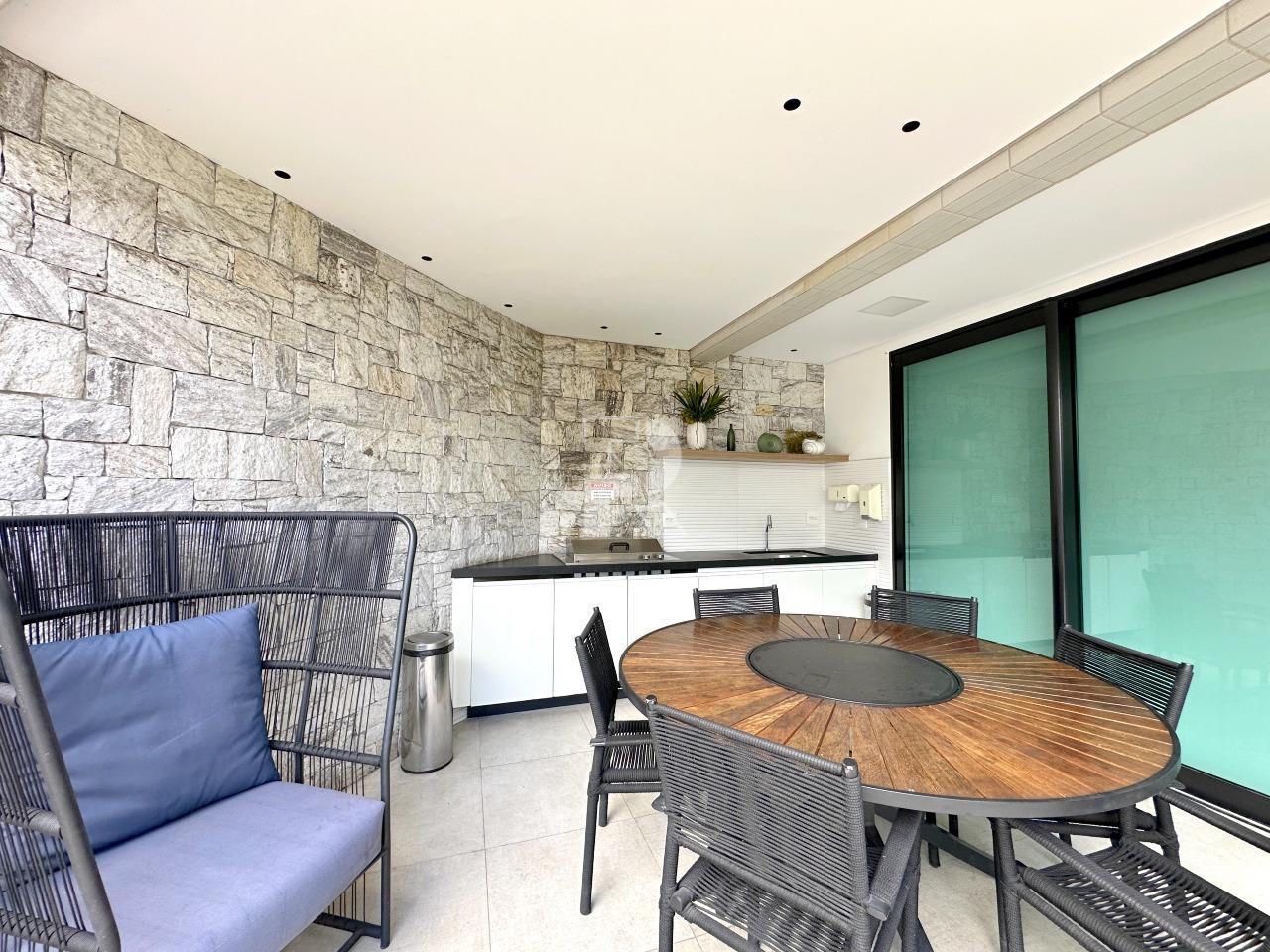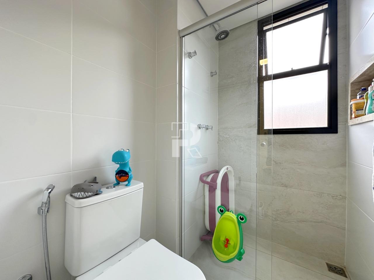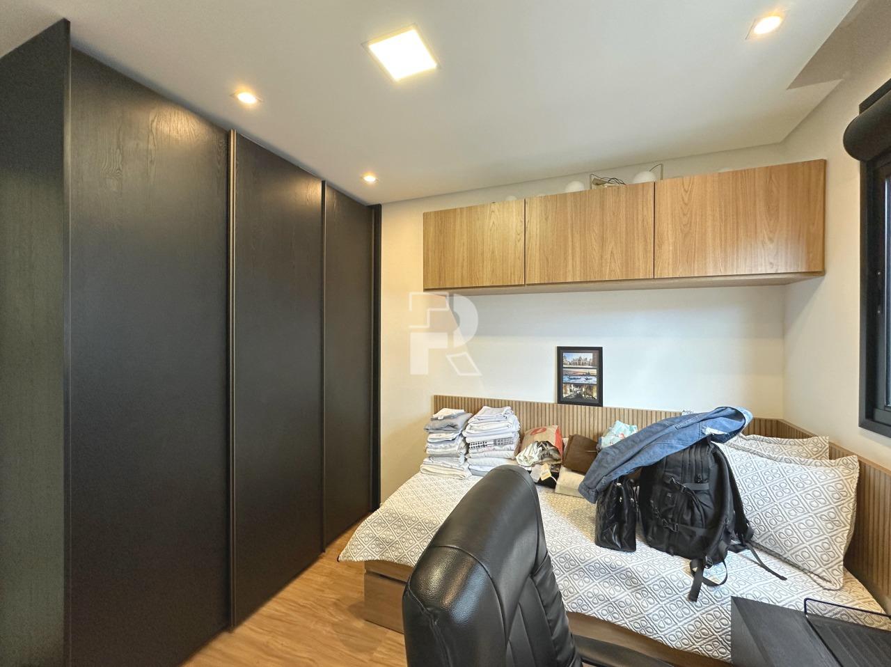 Sala para dois ambientes com piso em porcelanato, teto rebaixado, projeto de iluminação, ar condicionado central, marcenaria completa e janela ampla; 03 quartos sendo uma suíte, e duas semi-suítes, todos os quartos com piso em vinílico, ar-condicionado e armários planejados; banho social e suíte 100% revestidos, box, armários e espelhos; cozinha com armários planejados, coifa, bancada americana em granito e piso em porcelanato; área de serviço independente.