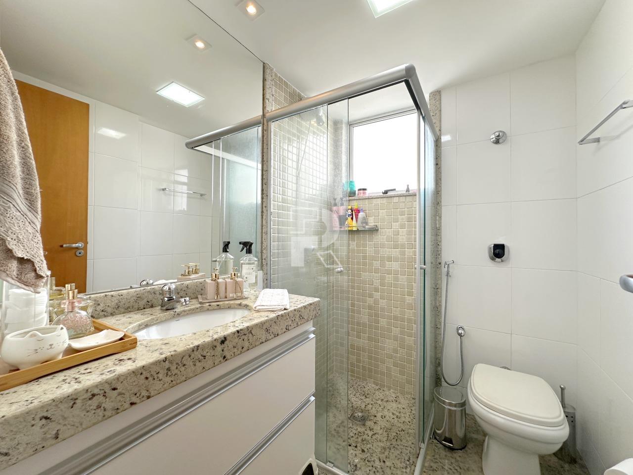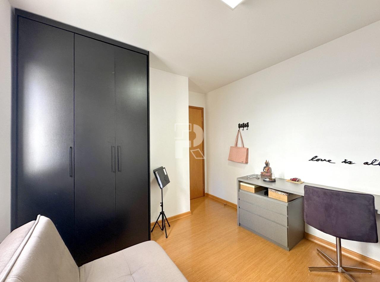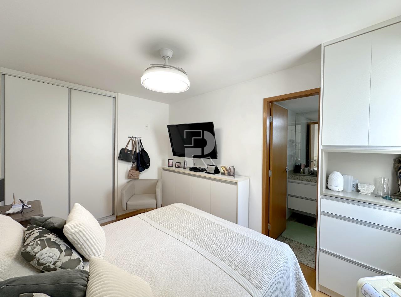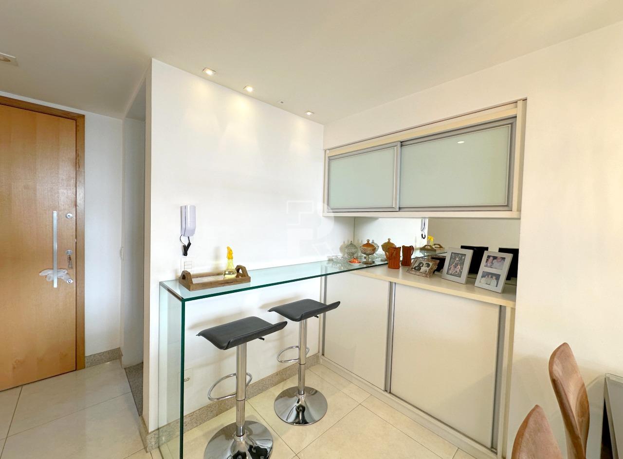 Sala para dois ambientes com piso em porcelanato, teto rebaixado, projeto de marcenaria e iluminação; Varanda; Rouparia no corredor; 03 quartos sendo um suíte, todos os quartos com piso em vinílico e armários; banheiros 100% revestidos, box, armários e espelhos; cozinha planejada com bancada americana em granito e piso em porcelanato e área de serviço independente com banheiro de serviço.