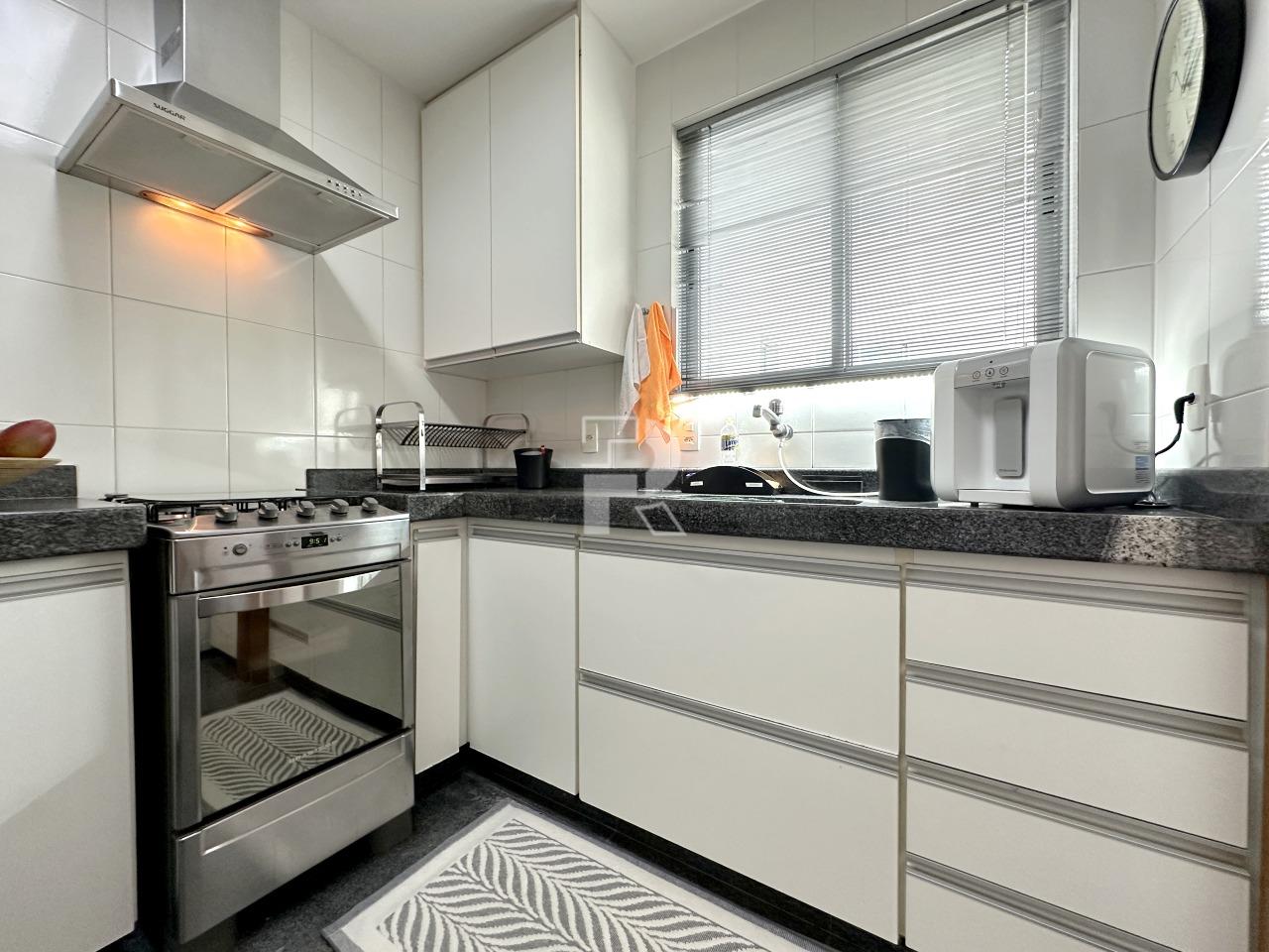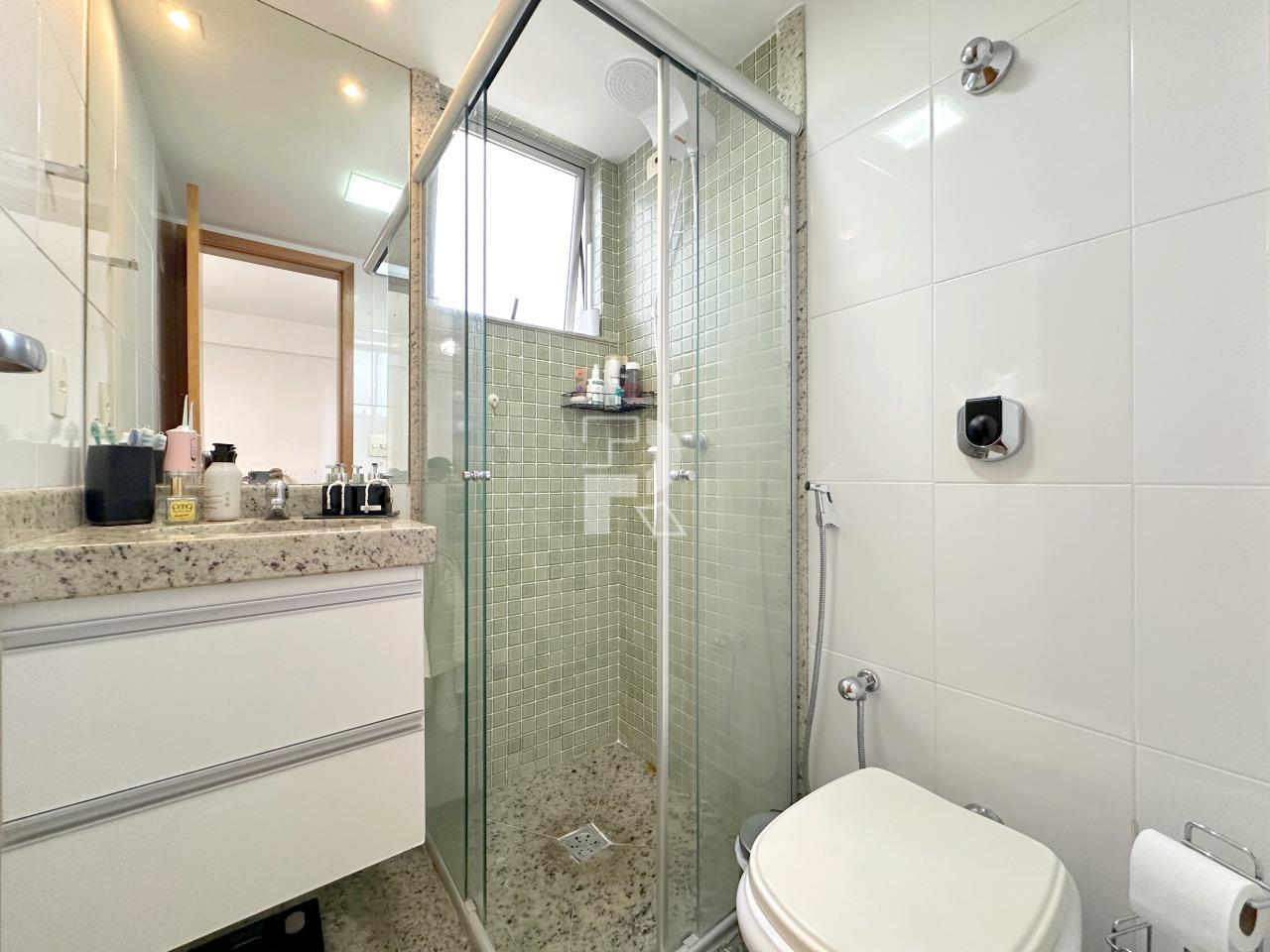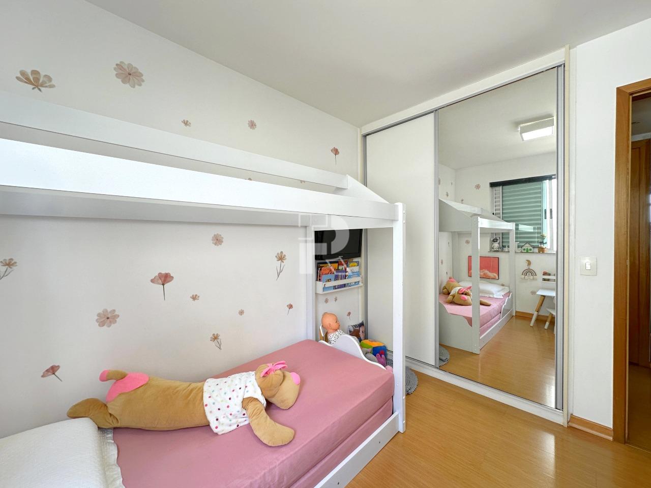 Sala para dois ambientes com piso em porcelanato, teto rebaixado, projeto de marcenaria e iluminação; Varanda; Rouparia no corredor; 03 quartos sendo um suíte, todos os quartos com piso em vinílico e armários; banheiros 100% revestidos, box, armários e espelhos; cozinha planejada com bancada americana em granito e piso em porcelanato e área de serviço independente com banheiro de serviço.