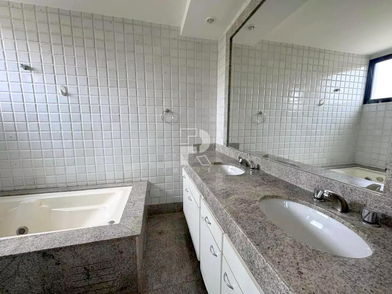 Sala para 3 ambientes com piso em mármore, teto rebaixado em gesso e iluminação planejada; lavabo; rouparia no corredor; 4 quartos com armários e piso em vinílico, sendo 2 suítes, suíte máster com closet e hidro; banhos com box, armários e espelhos; cozinha com bancadas e piso em granito e armários planejados; área de serviço, despensa e DCE.