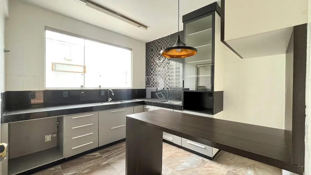 Cozinha espaçosa, totalmente reformada, com ilha central, armários planejados e bancadas em granito.