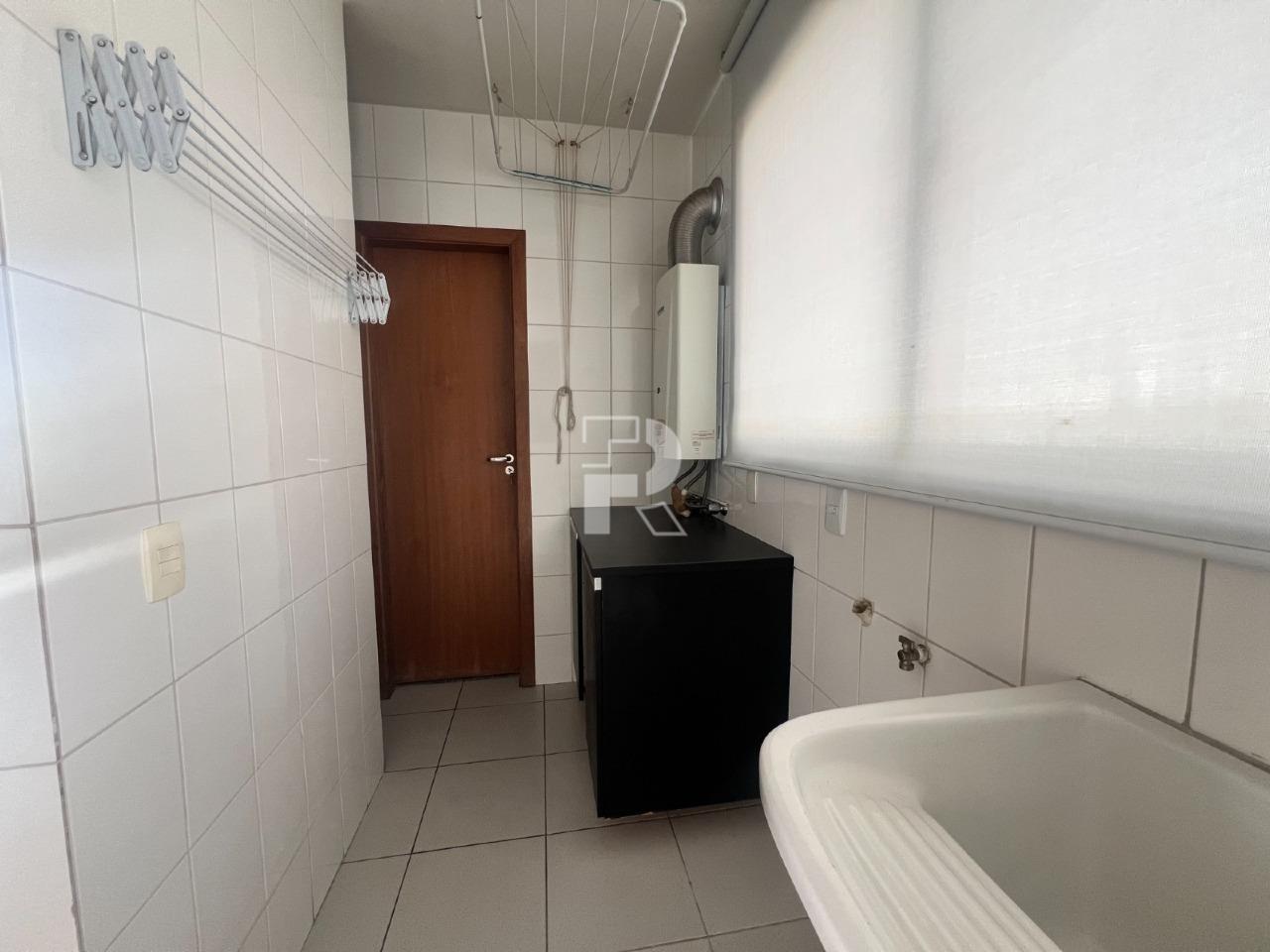 A cozinha é moderna e funcional, totalmente montada com armários planejados e bancadas em granito, além de área de serviço independente e DCE (dependência completa de empregada).