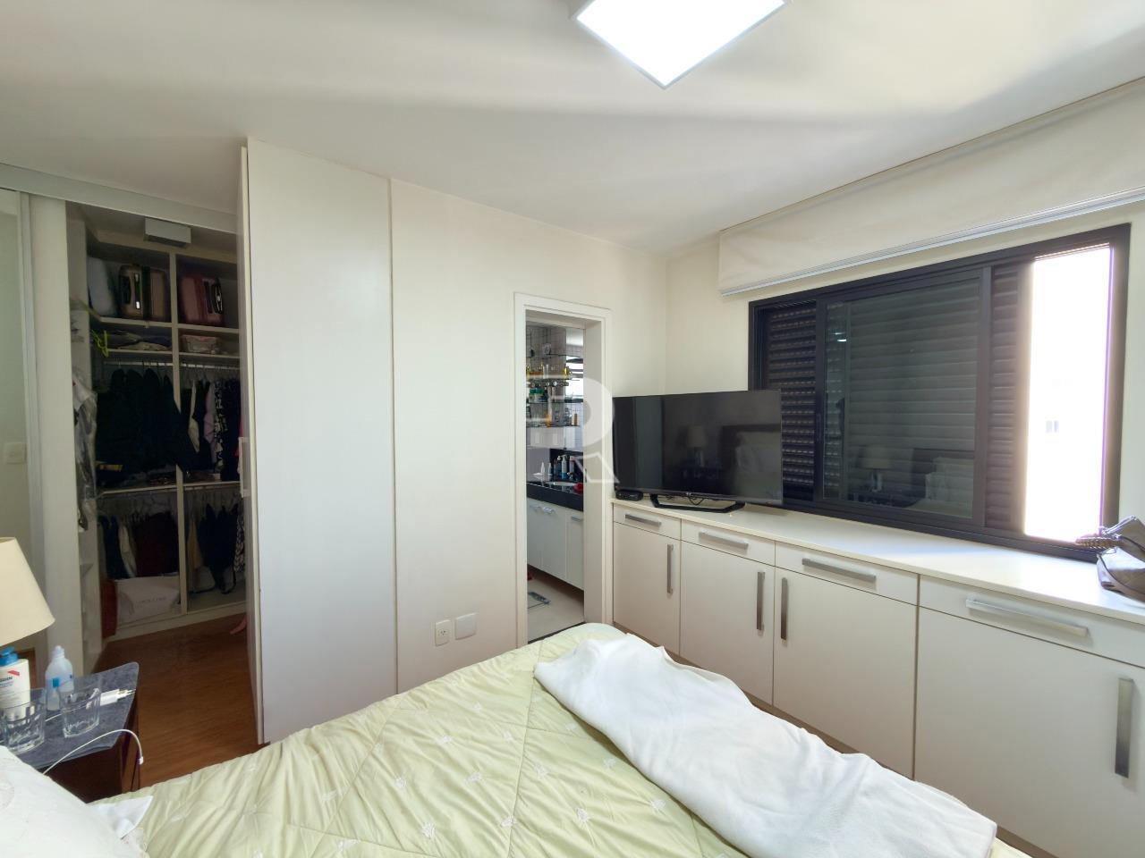 04 quartos transformados em 03, sendo 1 suíte com closet, armários; suíte e banheiro social com piso em porcelanato, bancadas em granito, armários, box e espelhos.