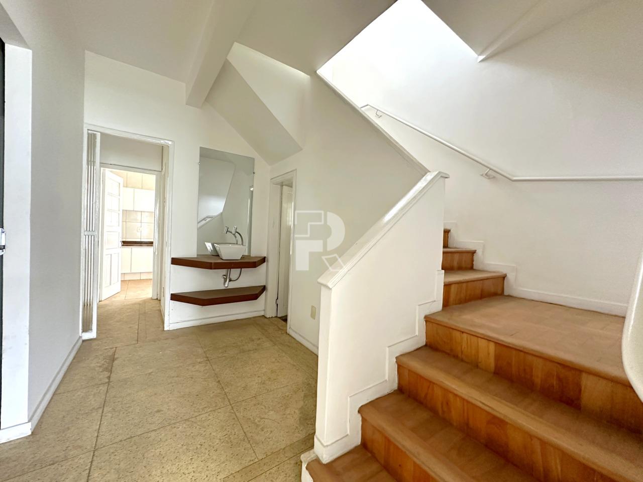 1º Nível da Rua: 02 Salas em "L", sendo uma com piso em taco de madeira e outra em granito; 03 Salas antigos quartos, todos com piso em madeira; copa e cozinha; 2 Banheiros;