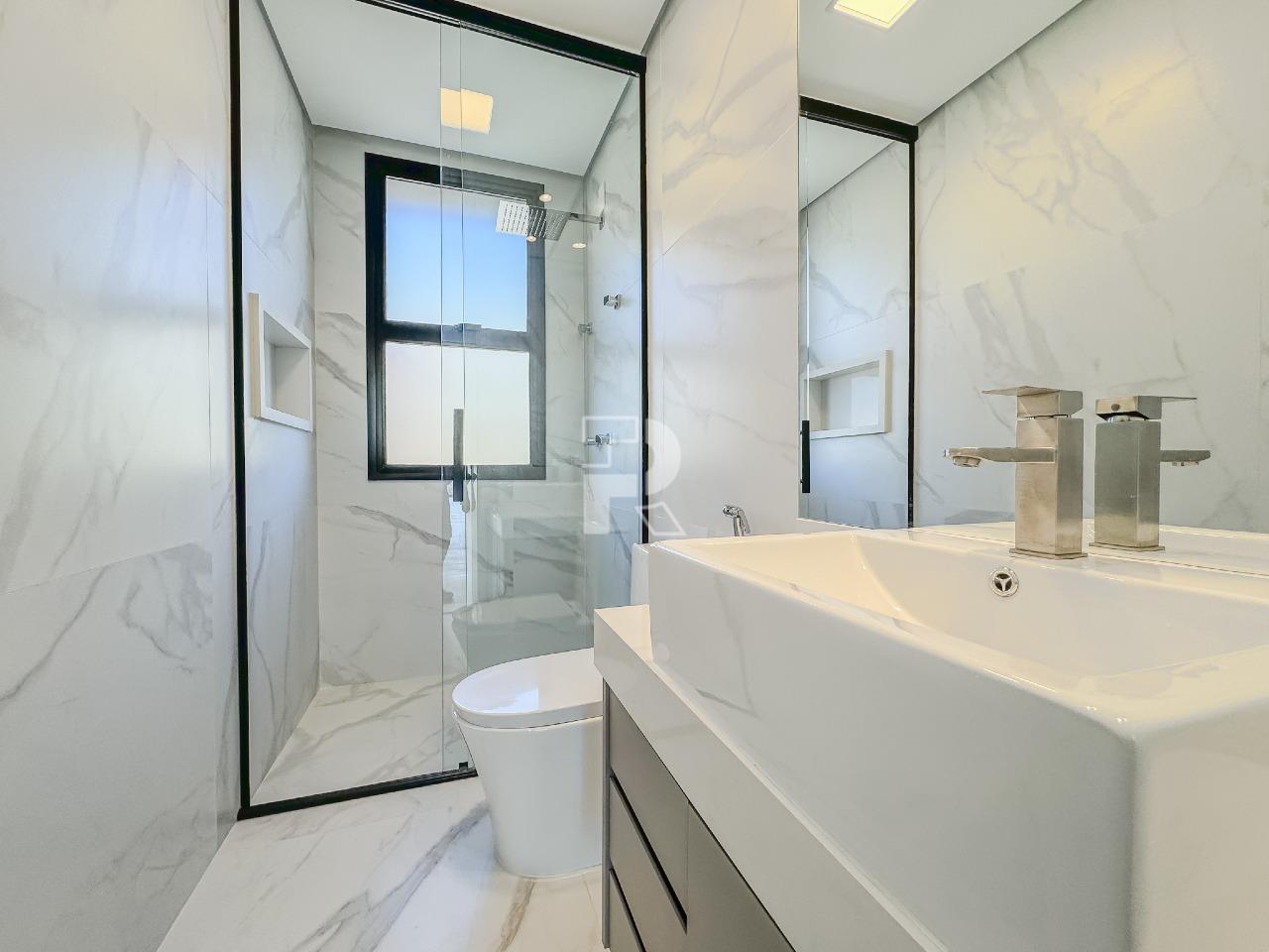 Segundo andar: 04 suítes confortáveis com armários e persianas elétricas, sendo a master com closet e o banheiro com cubas e chuveiros duplos. Tem uma varanda com vistas para as montanhas.