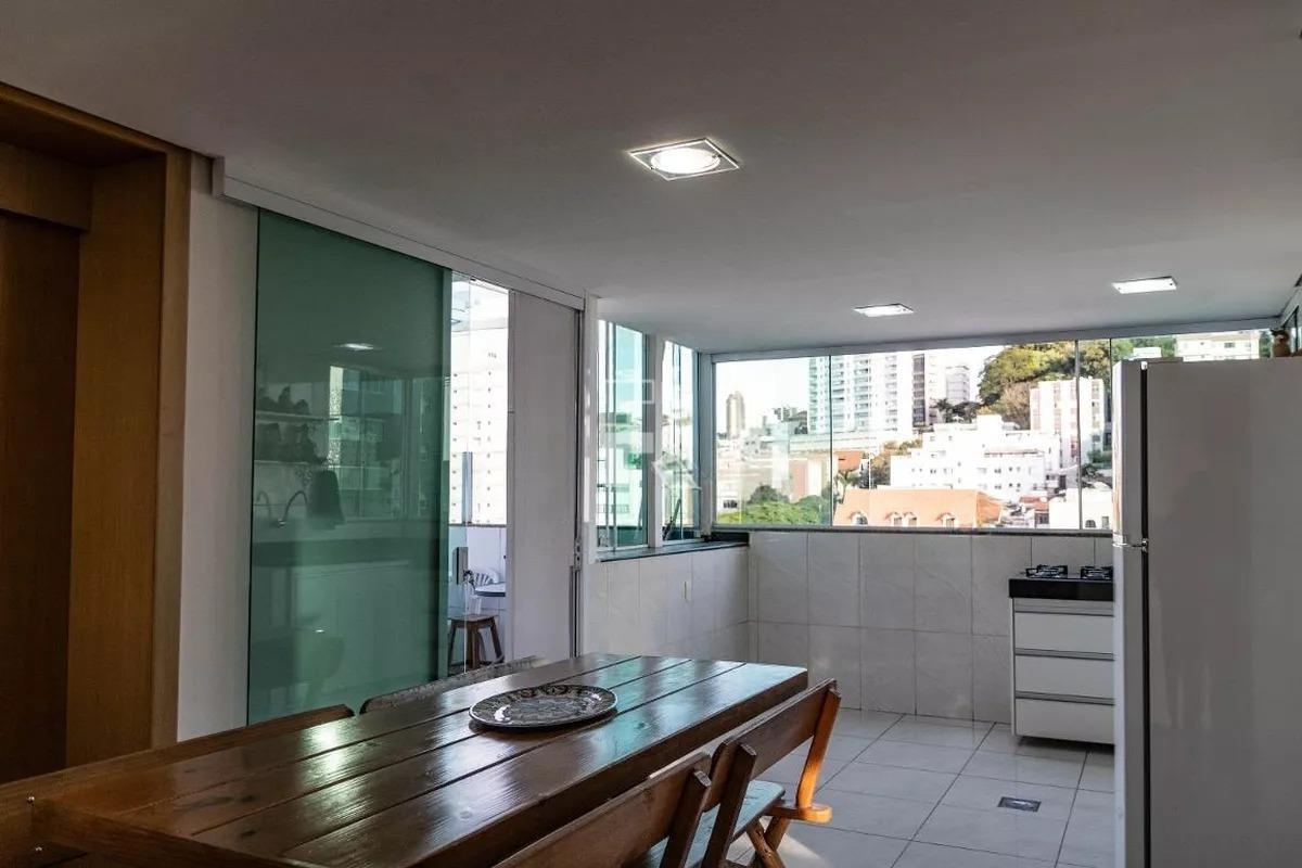 Sala para dois ambientes com piso em porcelanato; cozinha com armários planejados, bancada em granito e área de serviço independente; quarto adaptado para home office; 03 quartos com armários, sendo 01 suíte; banhos com box, espelhos e armários; cobertura, duplex com área livre espaçosa e ambientes planejados para conforto e funcionalidade; mobiliada e com estrutura adequada às necessidades dos moradores.