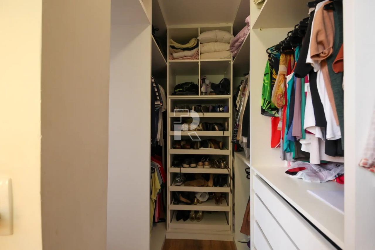 1° piso: sala para dois ambientes, com piso em porcelanato e decoração e marcenaria planejada, um banheiro social, reformado. São 02 quartos. O quarto principal tem um super closet. O segundo quarto possui excelentes armários, bancada, escritório e uma cama embutida na parede com sistema de suspensão. Muito prático e moderno, que pode ser usado como escritório com mais espaço ou quarto. Os 2 quartos possuem ar condicionado.