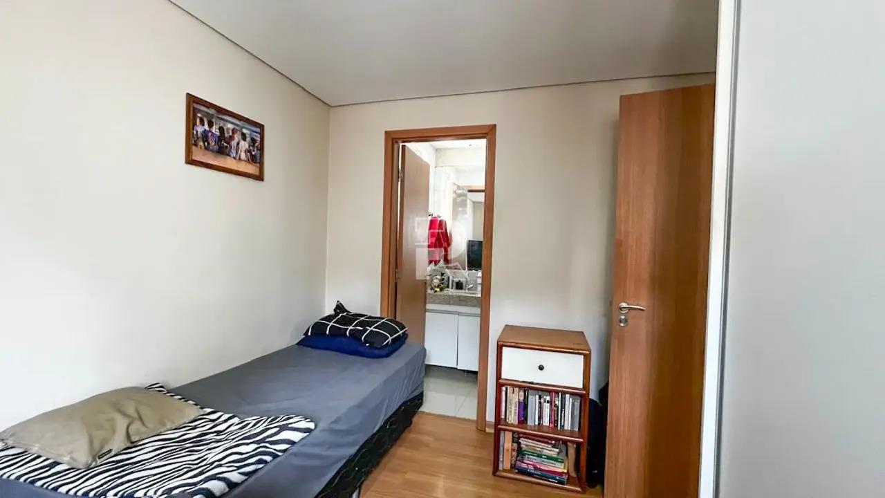 Sala ampla com piso em porcelanato; 02 quartos sendo (1 suíte), com ótimos armários e piso em laminado de madeira; cozinha tipo americana com armários planejados e revestimento em granito.