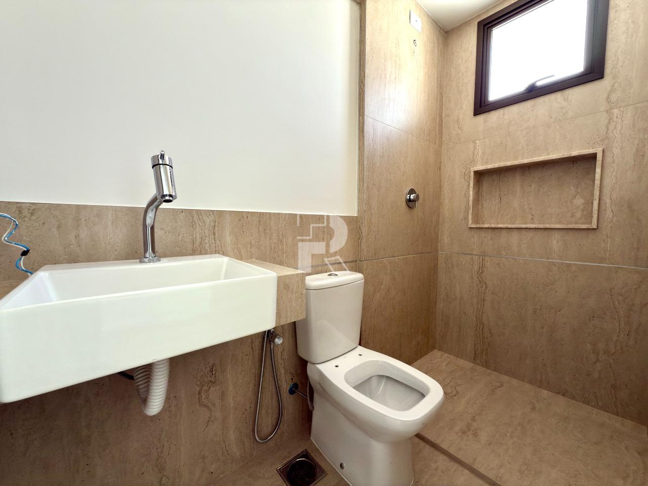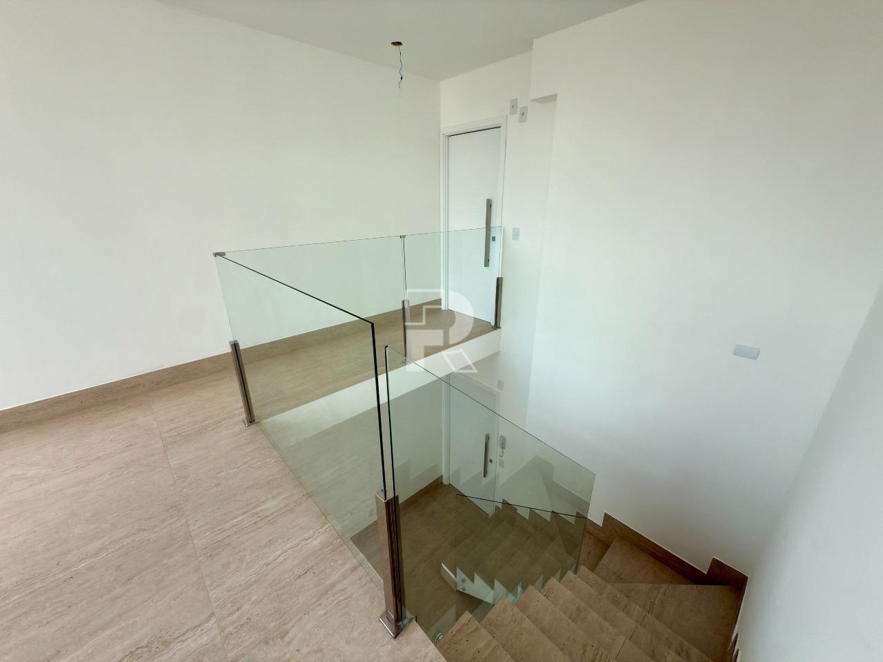 No primeiro pavimento, são 4 quartos, sendo 2 suítes, banheiro social e uma sala ampla. No segundo pavimento, sala espaçosa integrada à cozinha, lavabo, terraço descoberto e espaço para montar uma área gourmet.