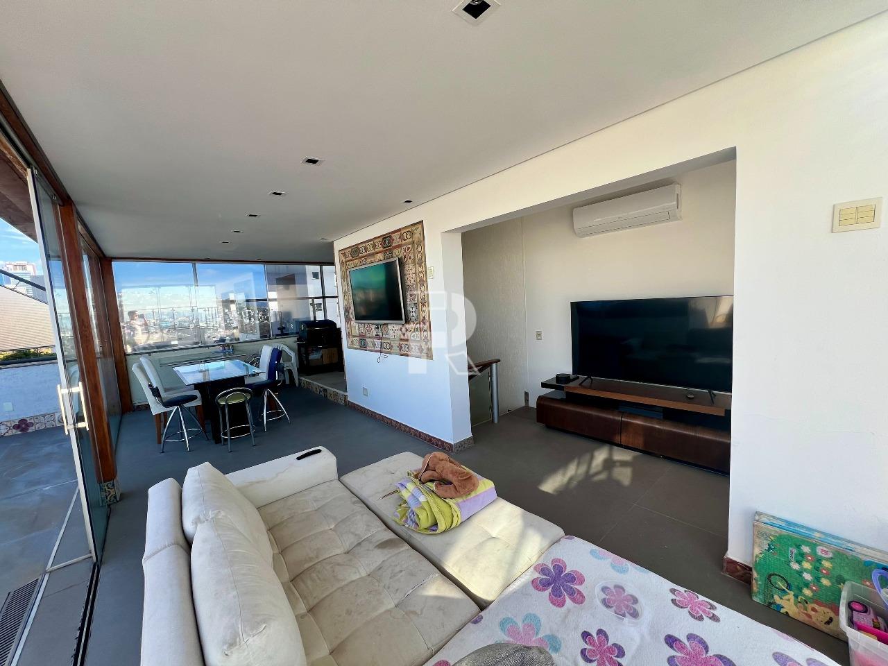Cobertura duplex espaçosa, com 295m² bem distribuídos. No 1º pavimento: 3 quartos (1 suíte master), banho social, sala e copa integradas, cozinha, área de serviço e varanda com ótima ventilação. No 2º pavimento: escritório, espaço gourmet, piscina privativa e ampla varanda com vista definitiva.
