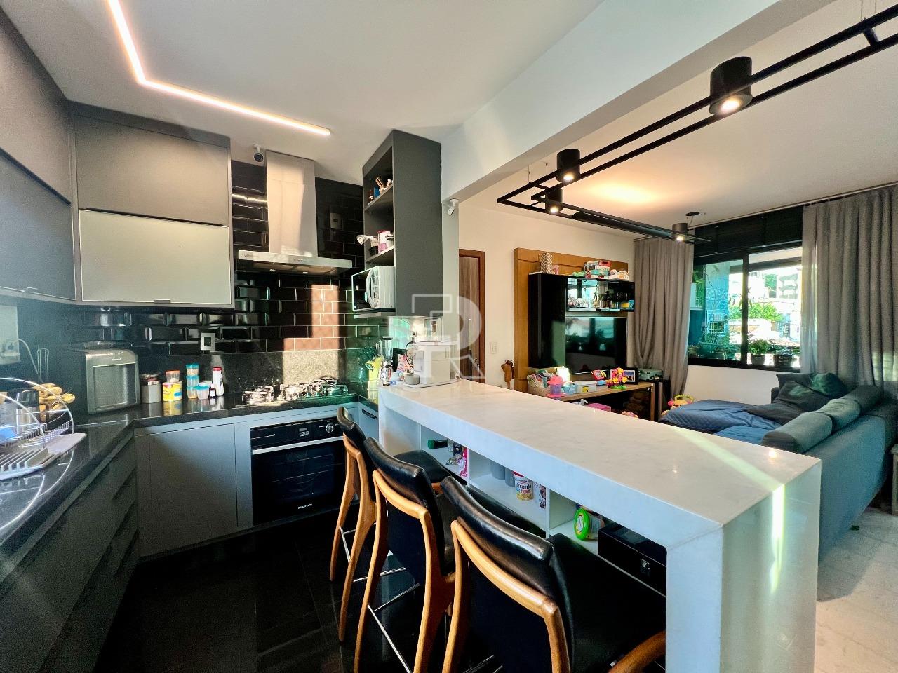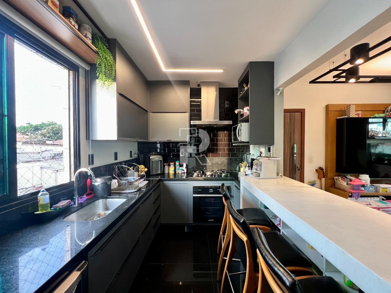 Cozinha com armários planejados e piso em granito